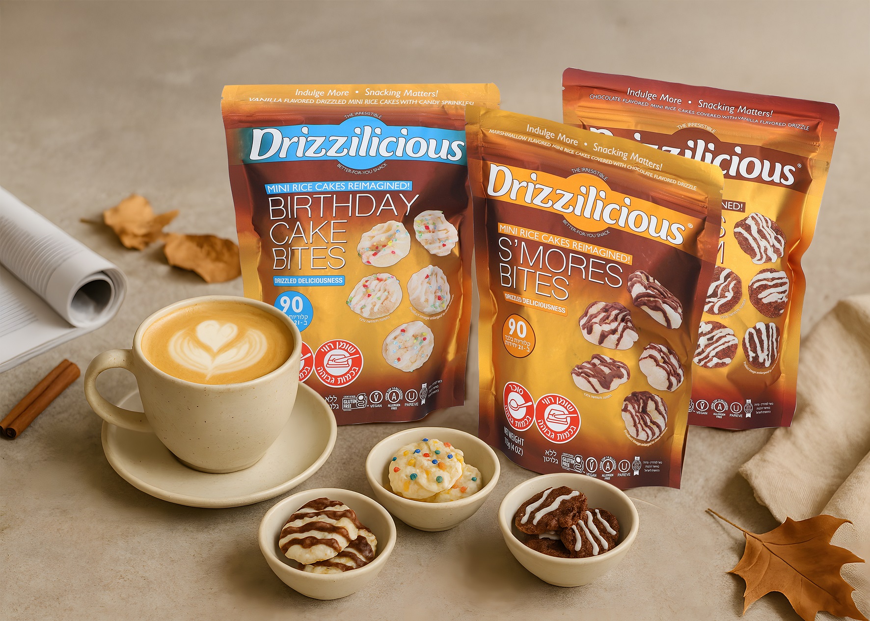 מותג Drizzilicious מציע חטיפים המשלבים טעם מפנק עם יתרונות בריאותיים, ורכיבים מזינים. המותג זכה להצלחה בארה"ב בזכות החדשנות שלו- שהפכה את פריכיות האורז הפשוטות למעדן עם שכבת דריזל מתוקה.